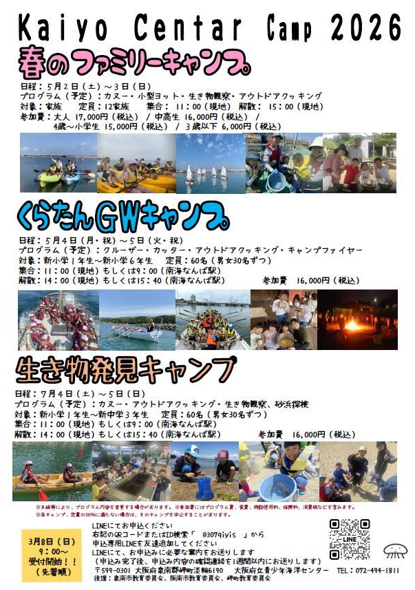 お申込みいただく際には、チラシ・ホームページの掲載事項にすべてご了承いただき、お申込みください。申し込まれる前に、内容の確認をお願い申し上げます。ラインの登録及びお申込みは必ず保護者(大人)が行ってください。