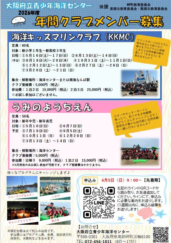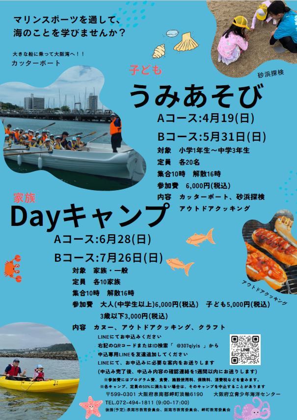 ・うみあそび【A:4/19、B:5/31】 対象:新小学1年生~中学3年生